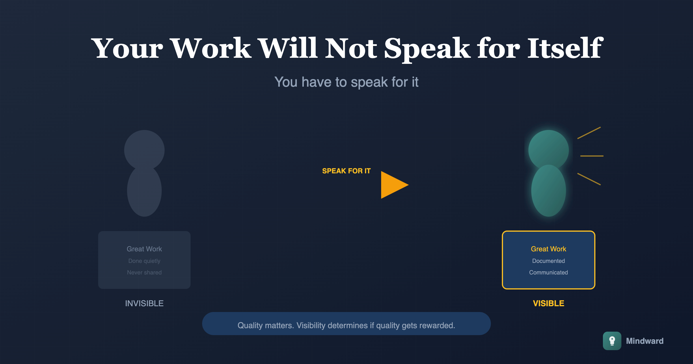 Doing great work is not enough. The people who advance are not just competent - they make sure the right people know they are competent. This is not bragging. It is professional survival.