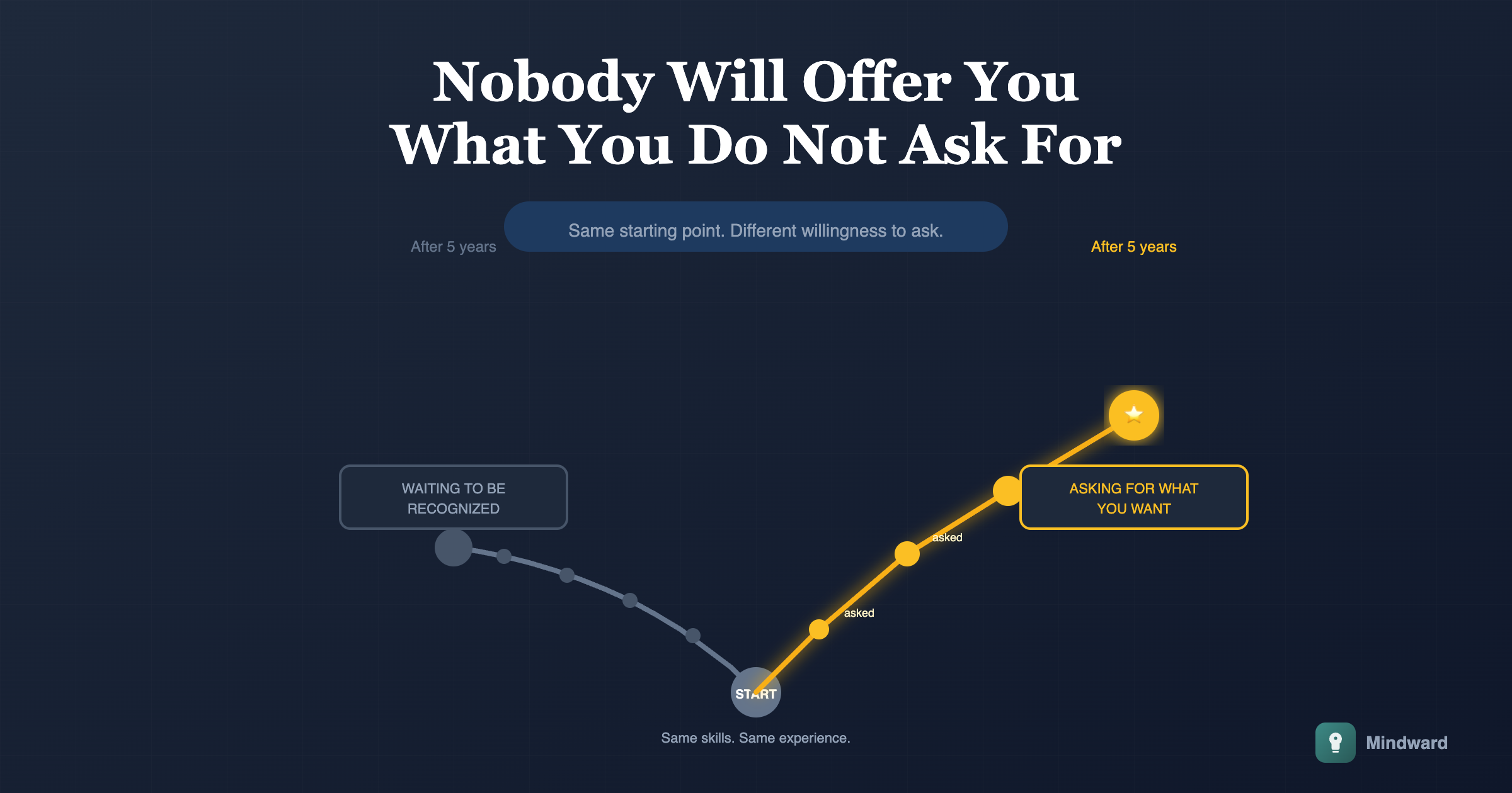 The raise you deserve, the project you want, the flexibility you need - none of it comes to those who wait. Asking is uncomfortable. Not asking is expensive.