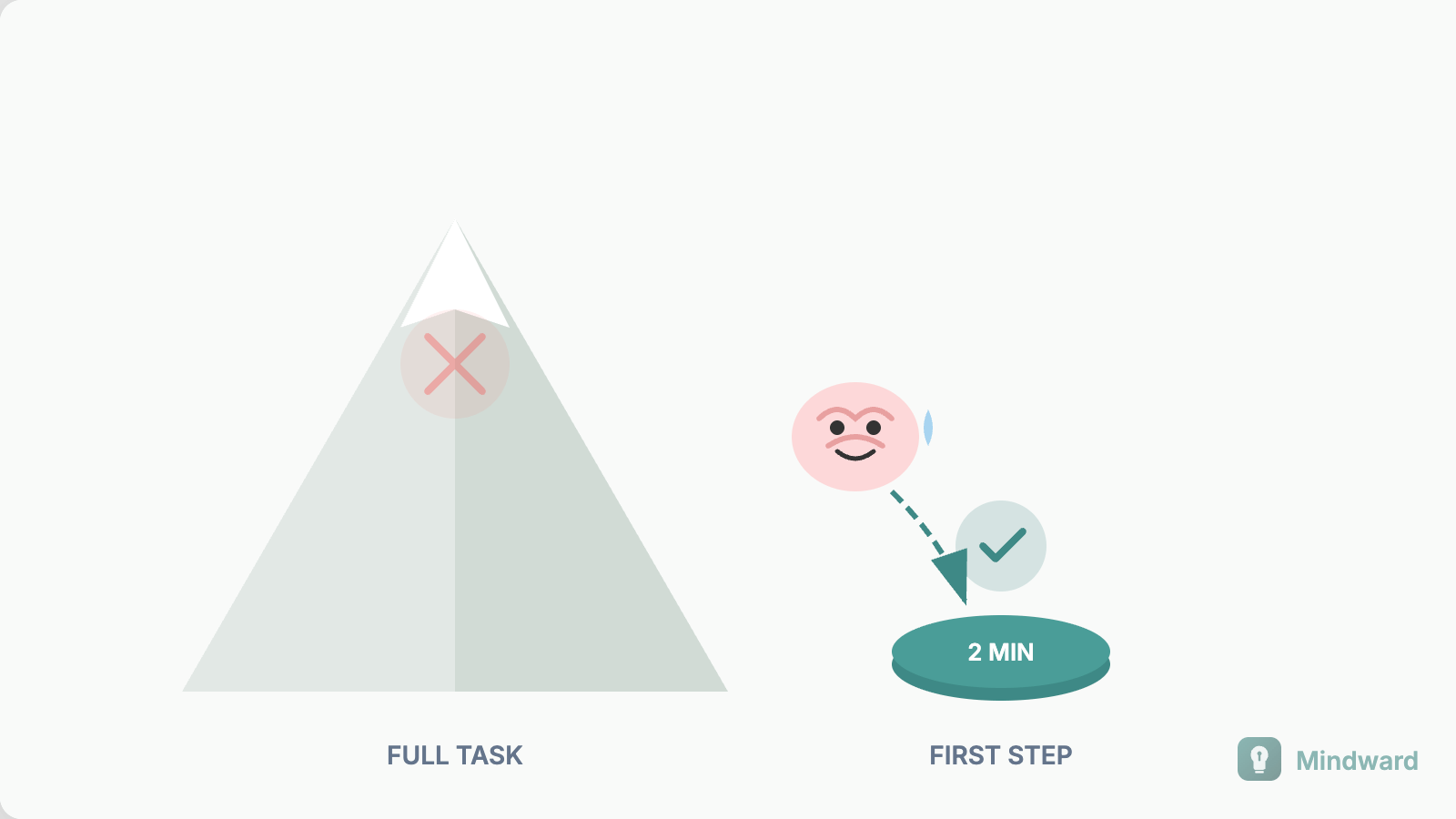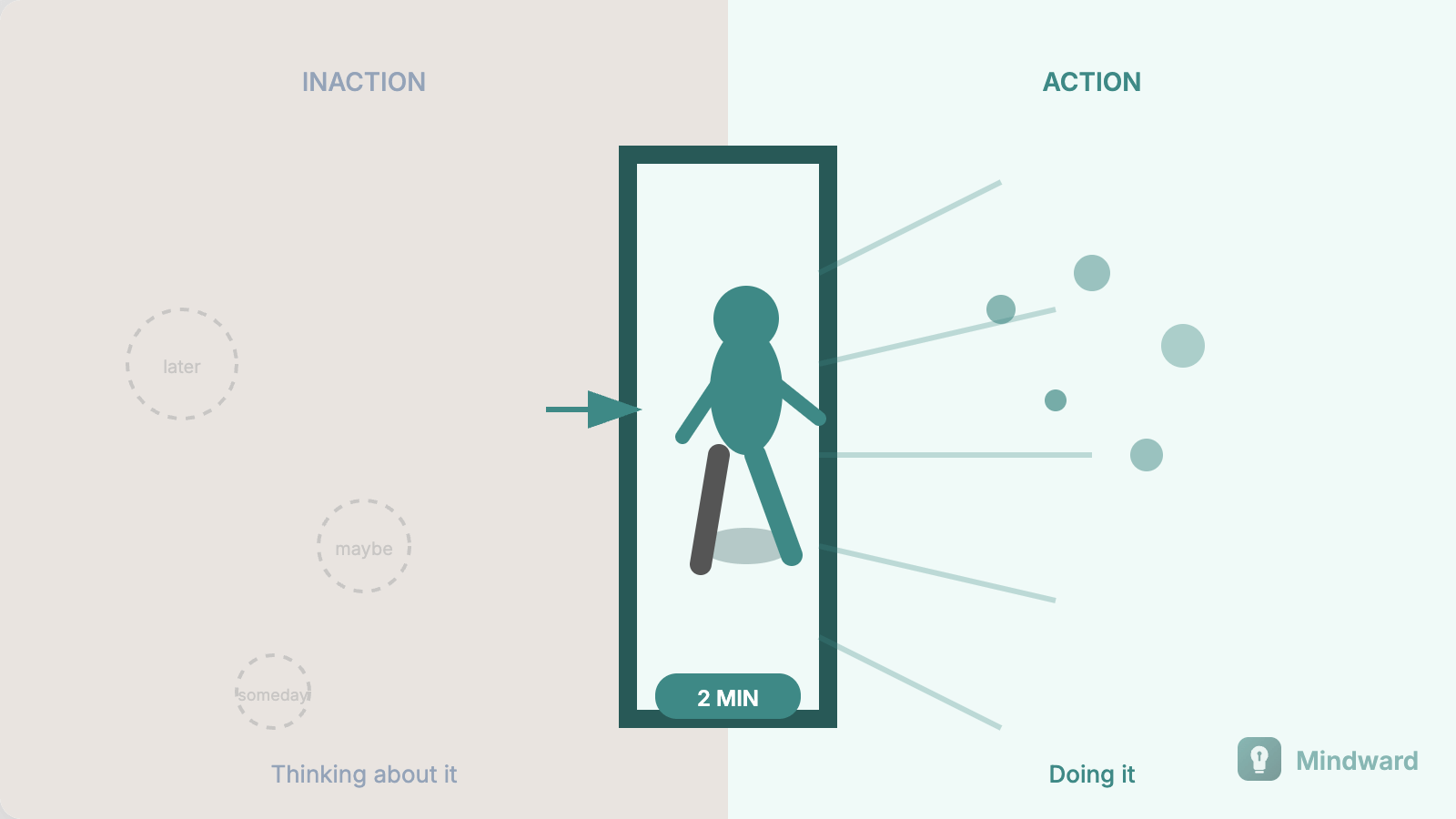The method is simple: reduce any task to its two-minute version. Not the whole task—just the entry point. What's the smallest action that moves you from zero to started?