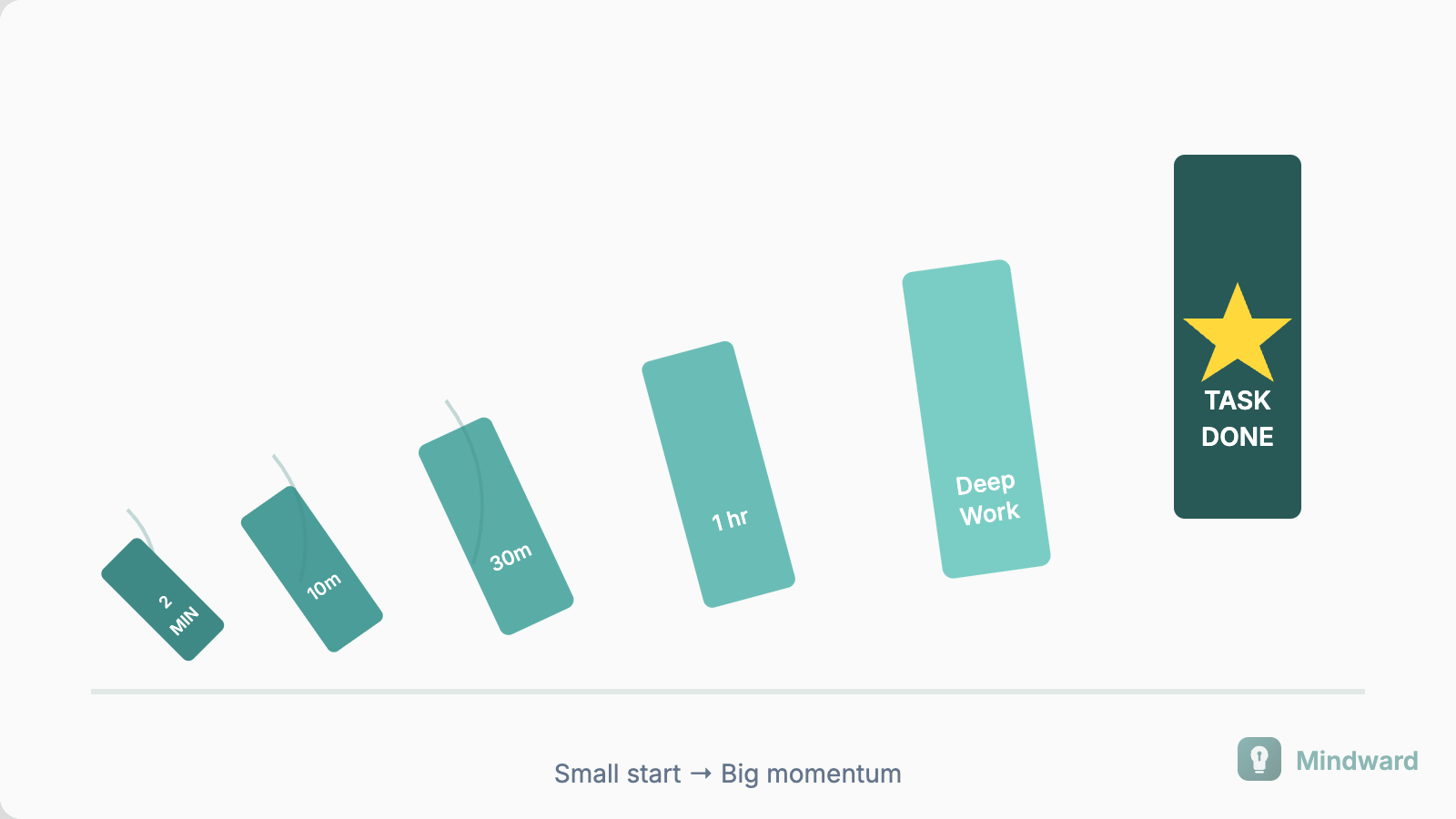 This is the core insight behind the two-minute rule: if something takes less than two minutes, do it now. But the deeper application—the one that actually transforms productivity—is using two minutes as your entry point for everything.